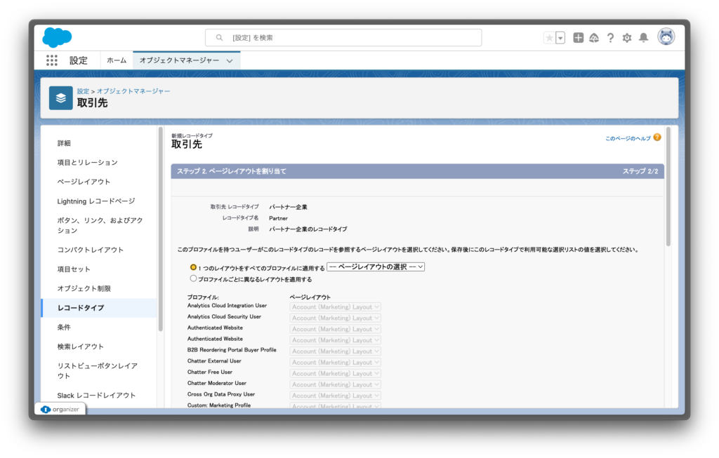 レコードタイプの機能がわかったところで、続いてレコードタイプの設定方法をご説明します。