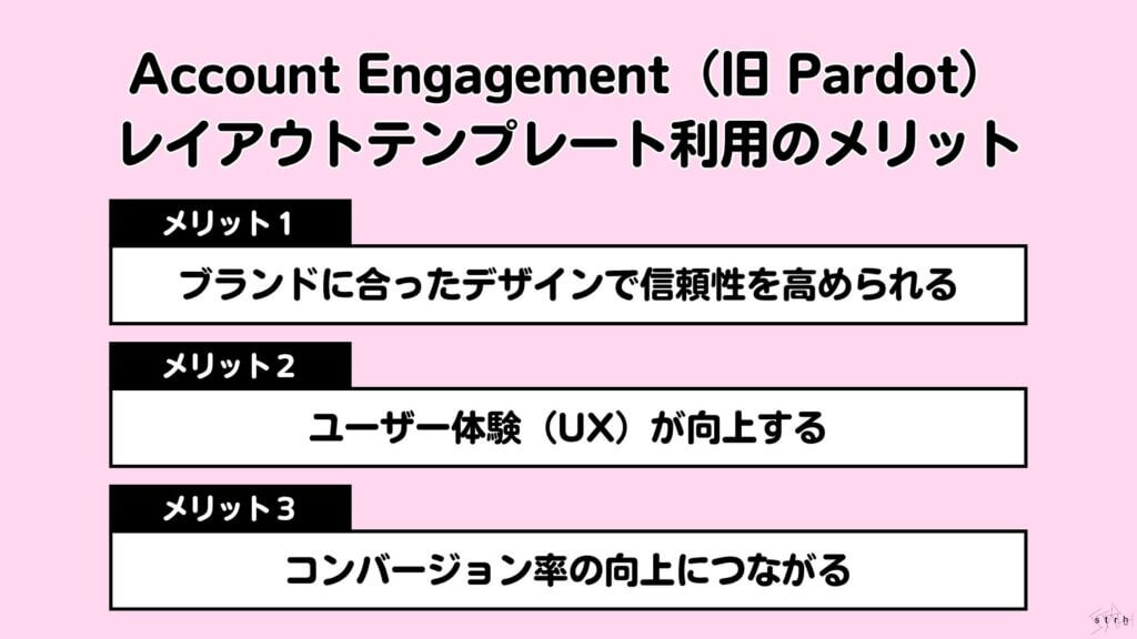 Account Engagementのレイアウトテンプレートは、単なるデザインのためのツールではなくブランドの信頼性を高めてユーザー体験を最適化し、コンバージョンに直結する重要な要素です。