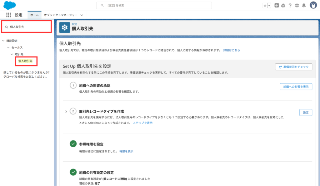 Salesforceの個人取引先を有効化するための前提条件と事前設定